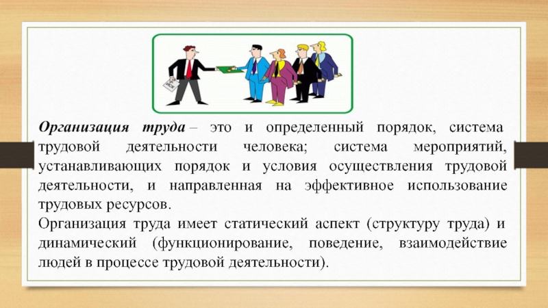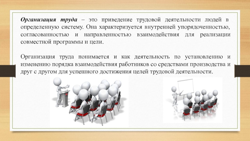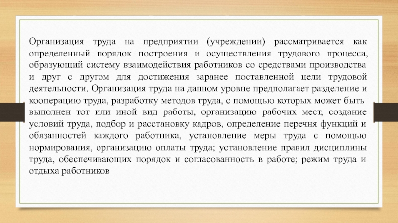 Слайд 7Организация труда на предприятии (учреждении) рассматривается как определенный порядок построения