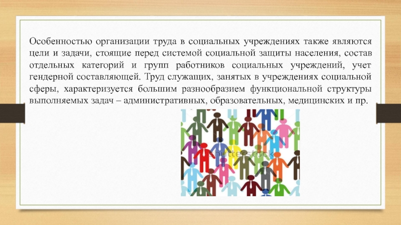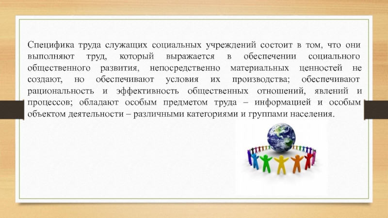 Слайд 10Специфика труда служащих социальных учреждений состоит в том, что они