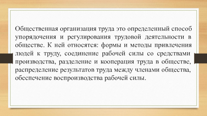 Слайд 6Общественная организация труда это определенный способ упорядочения и регулирования трудовой