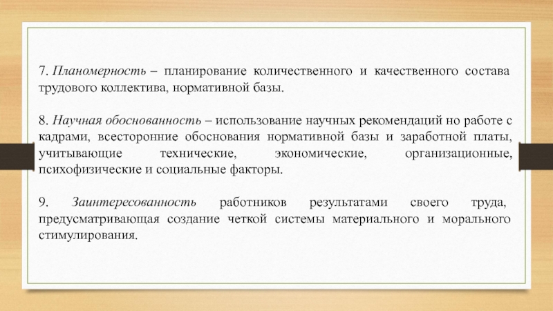 Слайд 177. Планомерность – планирование количественного и качественного состава трудового коллектива, нормативной базы.