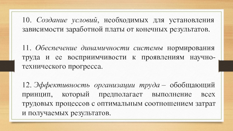 Слайд 1810. Создание условий, необходимых для установления зависимости заработной платы от