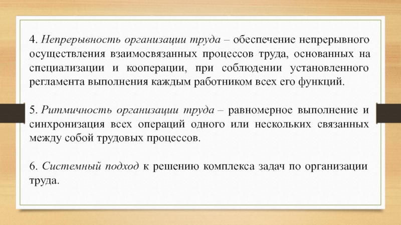 Слайд 164. Непрерывность организации труда – обеспечение непрерывного осуществления взаимосвязанных процессов труда, основанных
