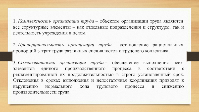 Слайд 151. Комплексность организации труда – объектом организации труда являются все структурные элементы