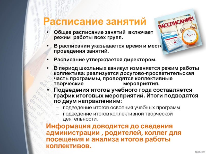 Расписание утверждается директором.