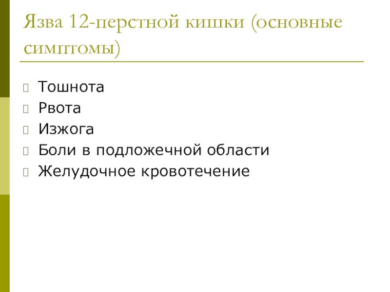 Слайд 10Язва 12-перстной кишки (основные симптомы)
