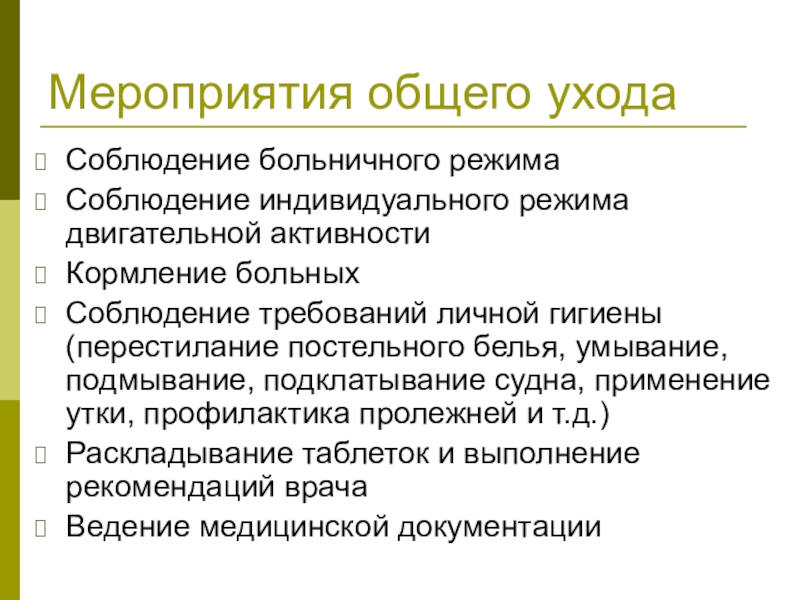 Слайд 2Мероприятия общего ухода