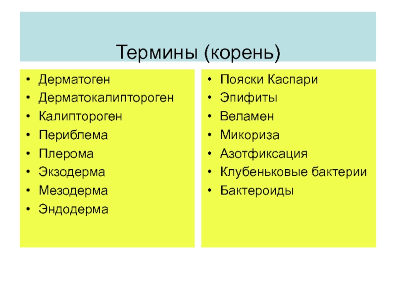Мезодерма – коровая паренхима (очень мощная) межклетники, вместилища, механ.волокна; радиальный транспорт, синтетическая и запасная ф-ции