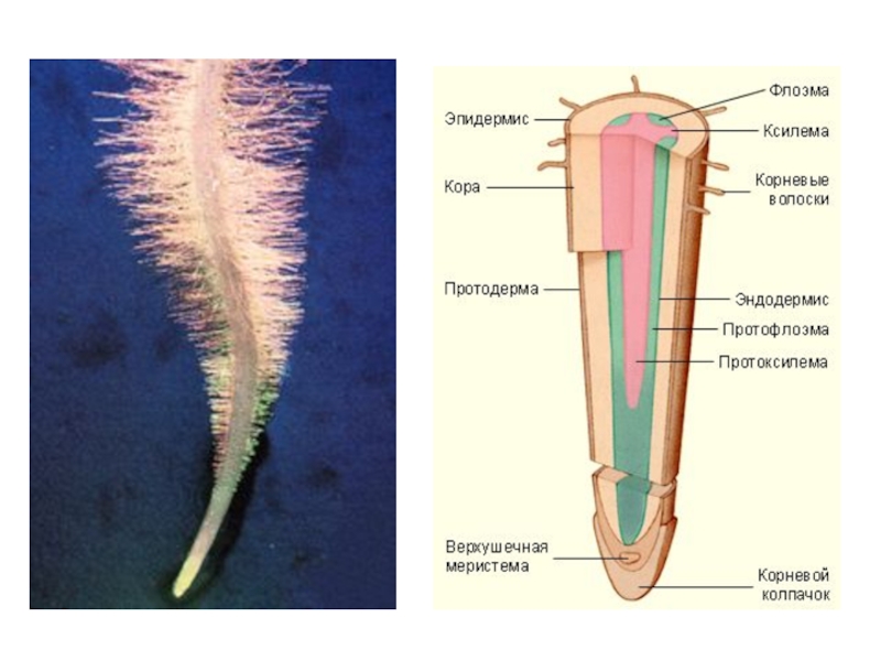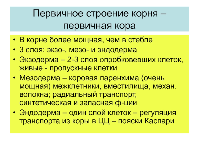 Эндодерма – один слой клеток – регуляция транспорта из коры в ЦЦ – пояски Каспари