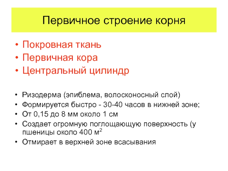 Создает огромную поглощающую поверхность (у пшеницы около 400 м2
