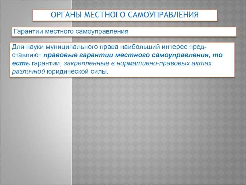 ставляют правовые гарантии местного самоуправления, то есть гарантии, закрепленные в