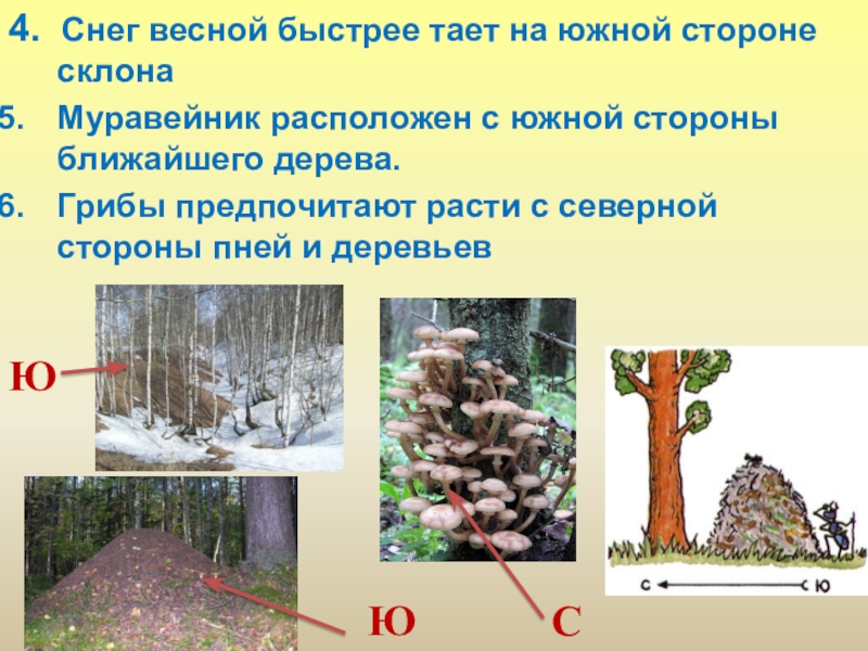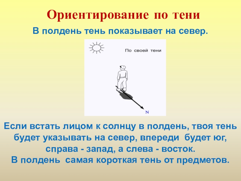 В полдень тень показывает на север.