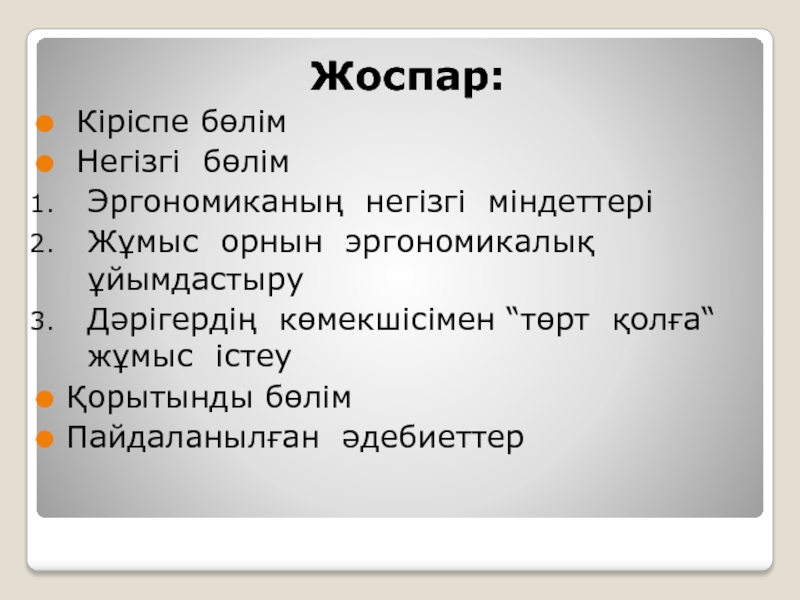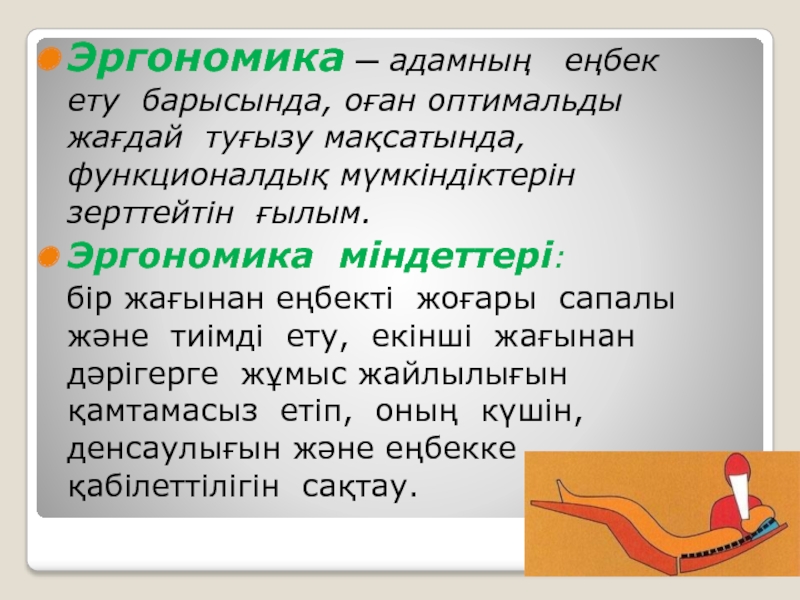 Слайд 4Эргономика ─ адамның еңбек ету барысында, оған оптимальды жағдай
