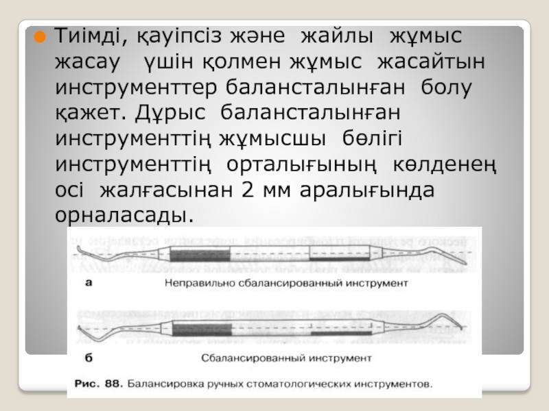 жасайтын инструменттер балансталынған болу қажет. Дұрыс балансталынған инструменттің жұмысшы бөлігі