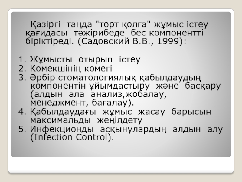 Слайд 18 Қазіргі таңда "төрт қолға" жұмыс істеу қағидасы тәжірибеде