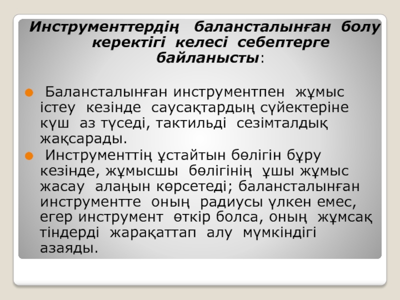 Слайд 7Инструменттердің балансталынған болу керектігі келесі себептерге байланысты: