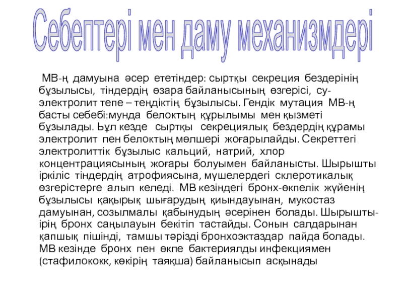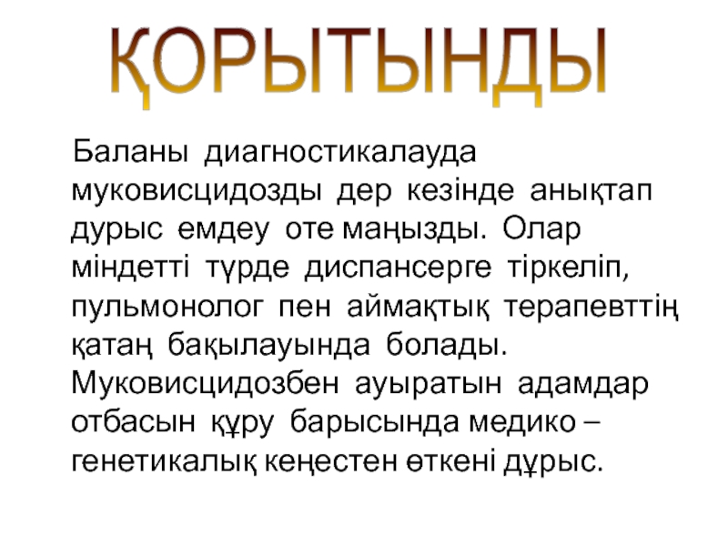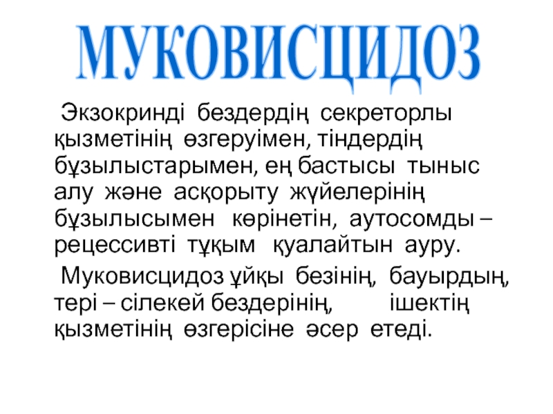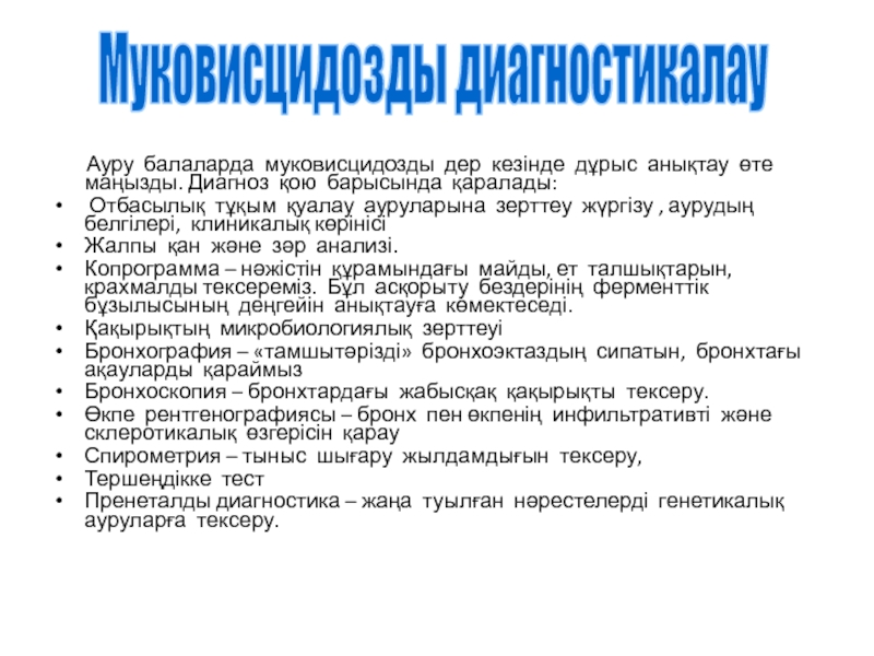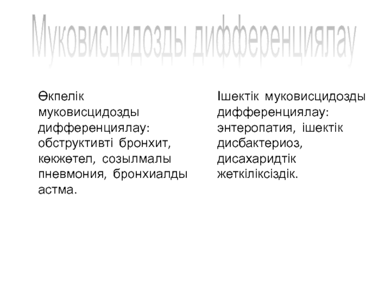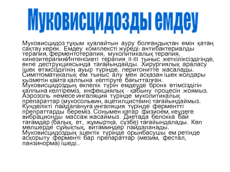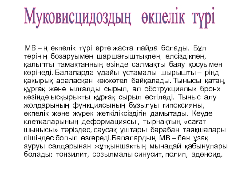 Тақырыбы: Муковисцидоздың өкпелік түрі. Балалардағы таралуы, клиникасы, диагнозы, емі.