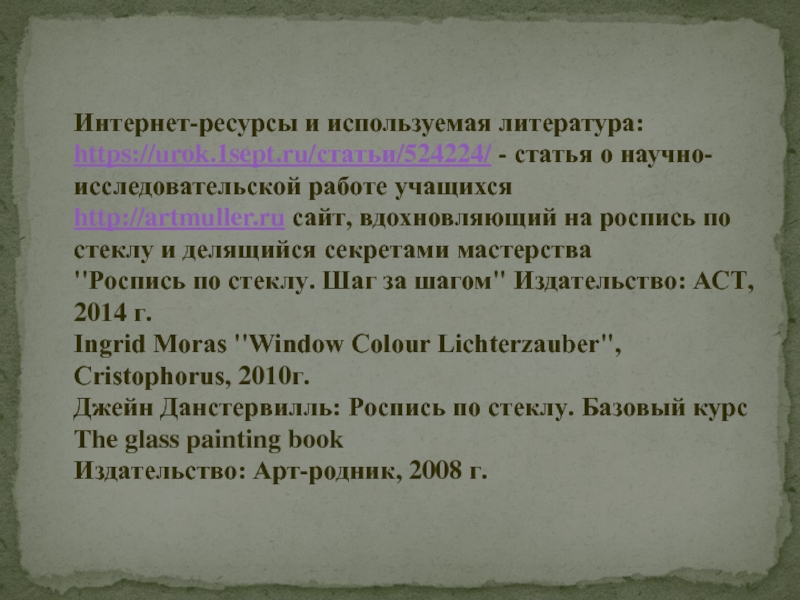 Интернет-ресурсы и используемая литература: