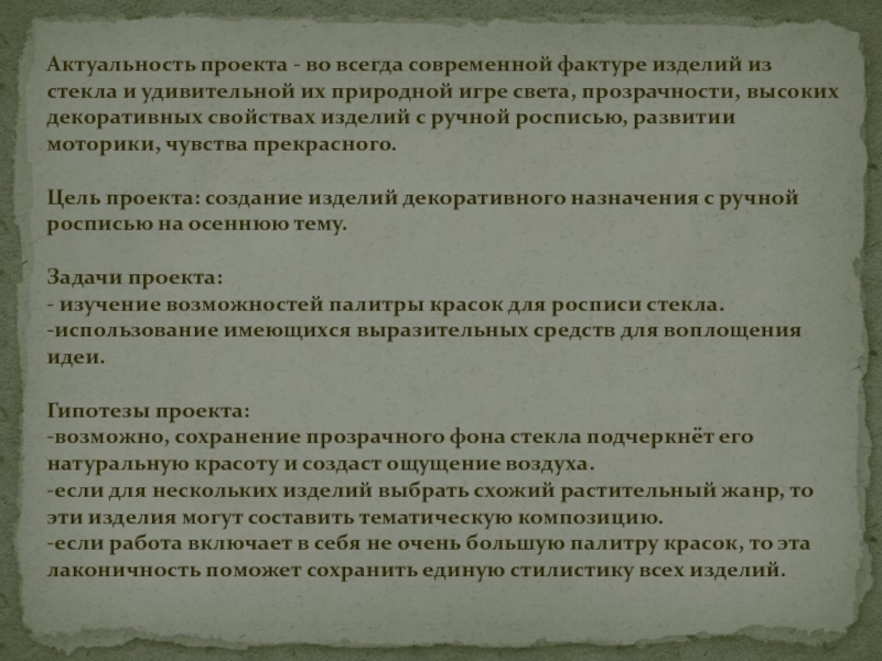 Цель проекта: создание изделий декоративного назначения с ручной росписью на осеннюю тему.
