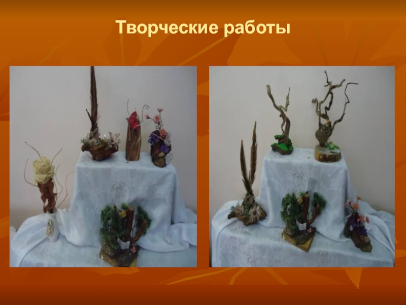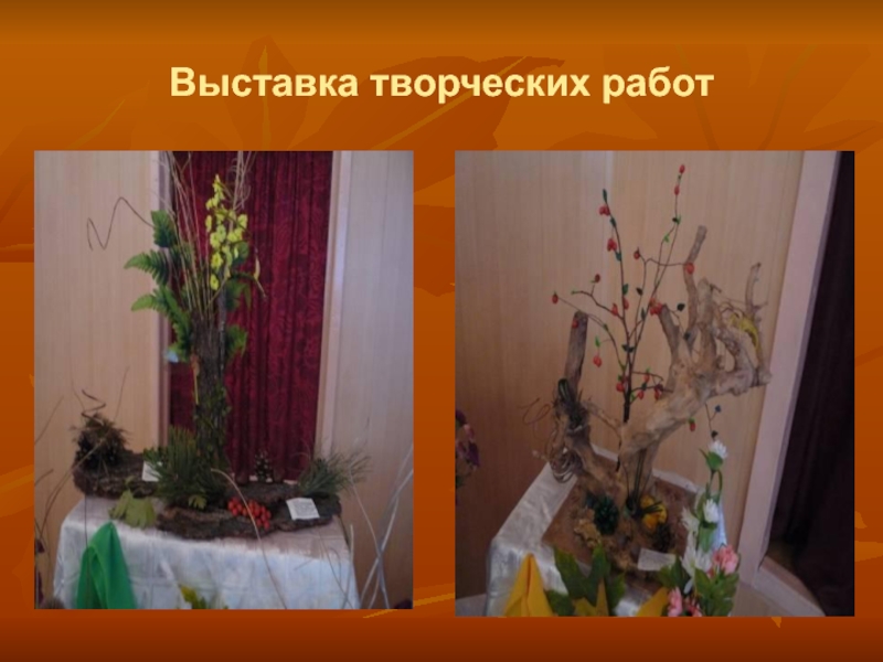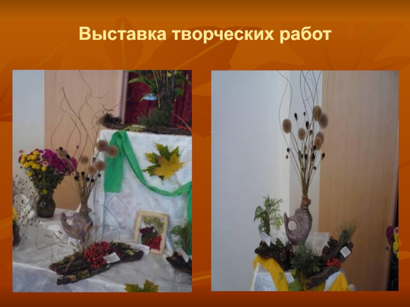 выставка творческих работ учащихся , букеты из веток, композиции из природного материал, проекты учащихся.