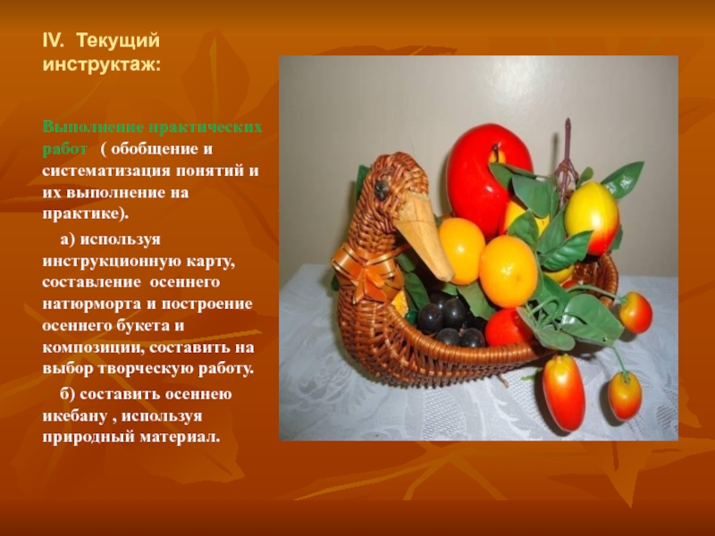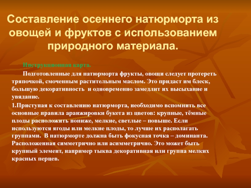 Составление осеннего натюрморта из овощей и фруктов с использованием природного