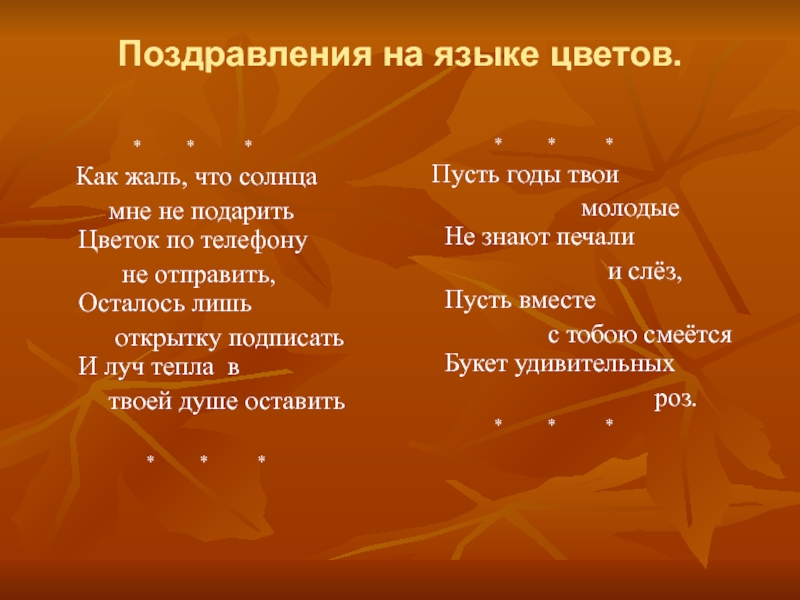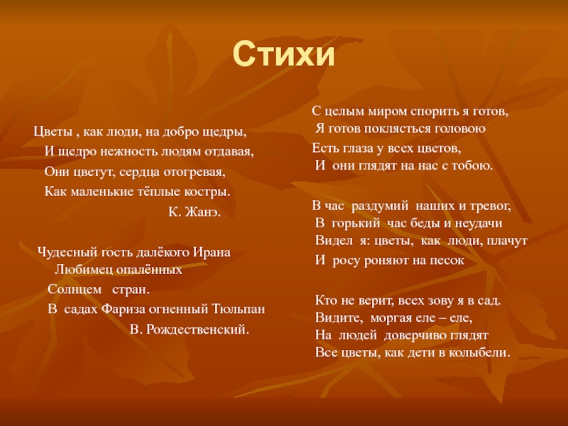 В час раздумий наших и тревог, В горький час беды и неудачи Видел я: цветы, как люди, плачут