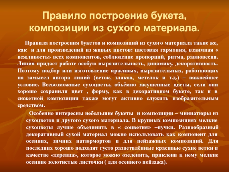 Слайд 45Правило построение букета, композиции из сухого материала.