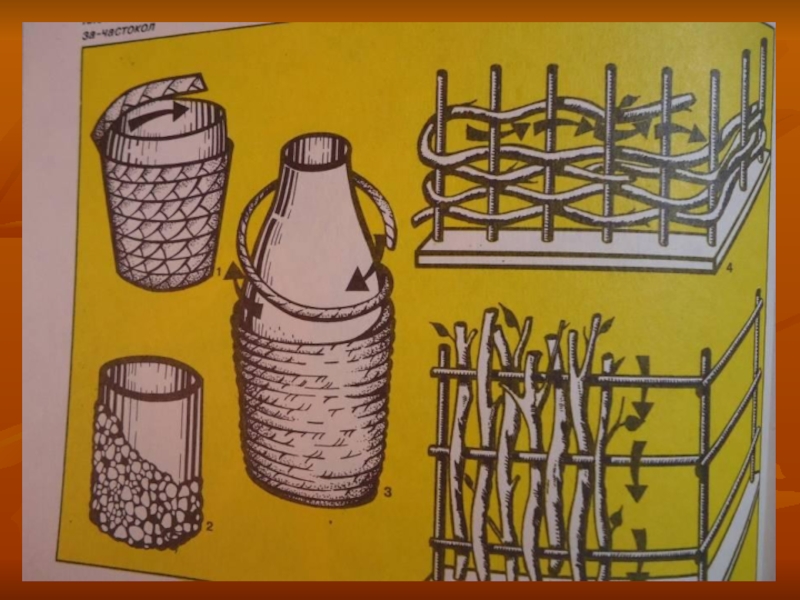 3. В качестве сосудов для натюрмортов можно использовать плетёные, деревянные или пластмассовые под дерево подносы, изящные купленные и самодельные корзиночки, высокие бокаловидные и низкие керамические вазы, а также коряжки, « плетни», « частоколы».