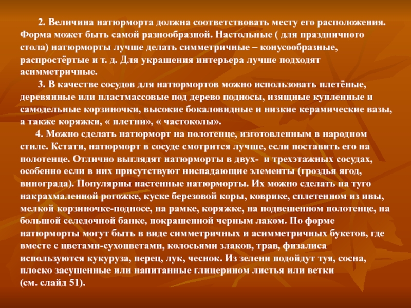 Слайд 50 2. Величина натюрморта должна соответствовать месту