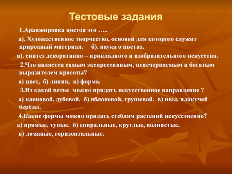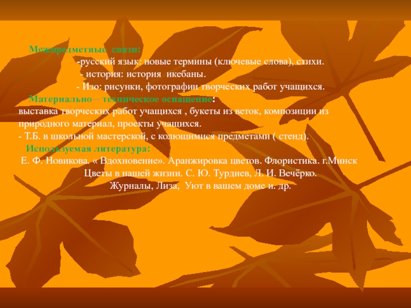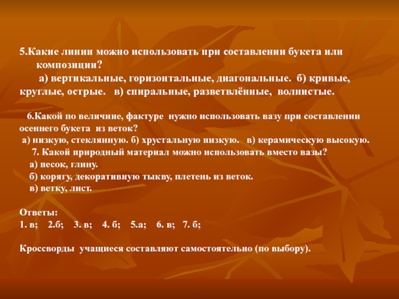 карту, составление осеннего натюрморта и построение осеннего букета и композиции, составить на выбор творческую работу.