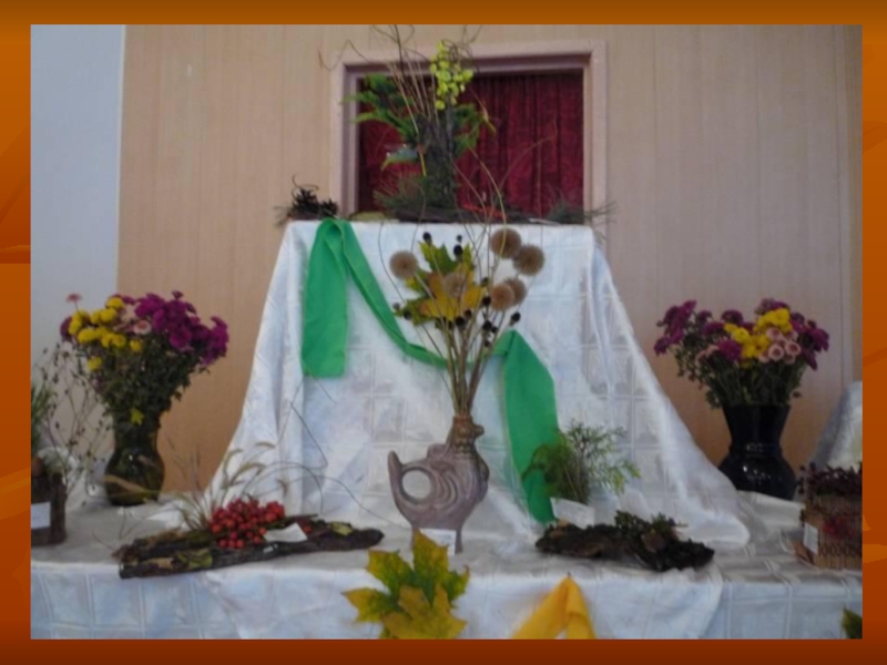 в) Какой природный материал можно использовать для составления букета, композиции, натюрморта? ( цветы свежие, засушенные, ветки разные по величине, форме, вазы низкие, высокие, разной фактуры , коряжки разные по виду и форме и т. д).