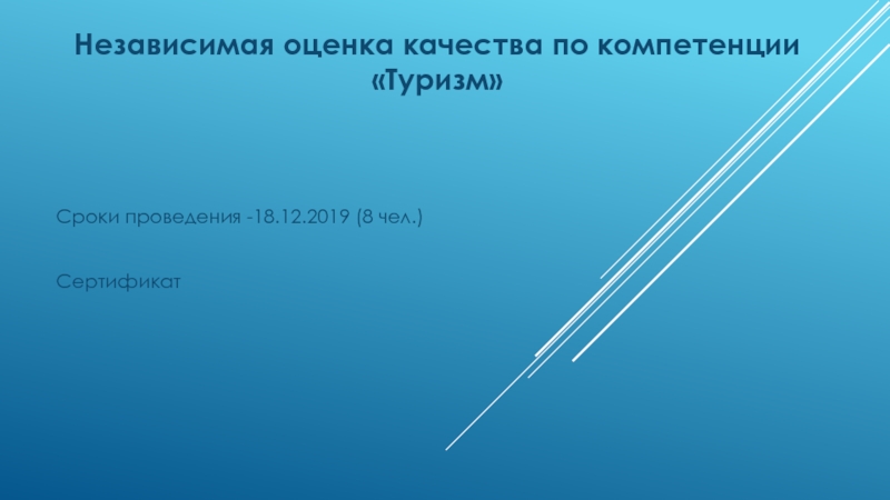 Независимая оценка качества по компетенции «Туризм»Сроки проведения -18.12.2019 (8 чел.)Сертификат