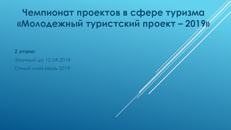 Слайд 2Чемпионат проектов в сфере туризма «Молодежный туристский проект – 2019»