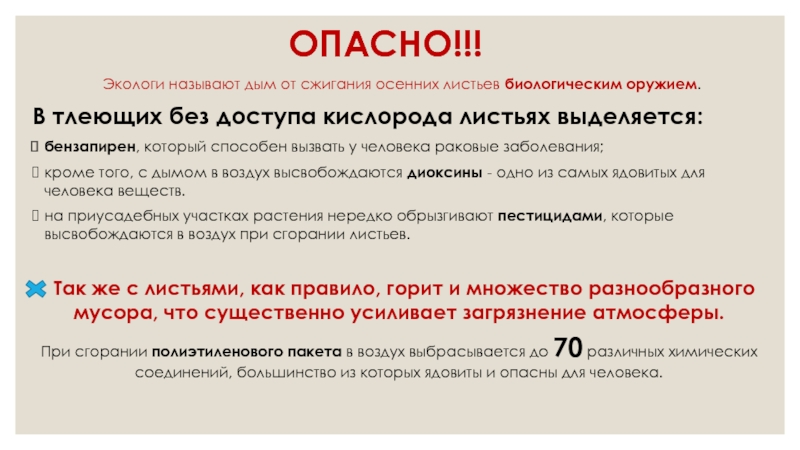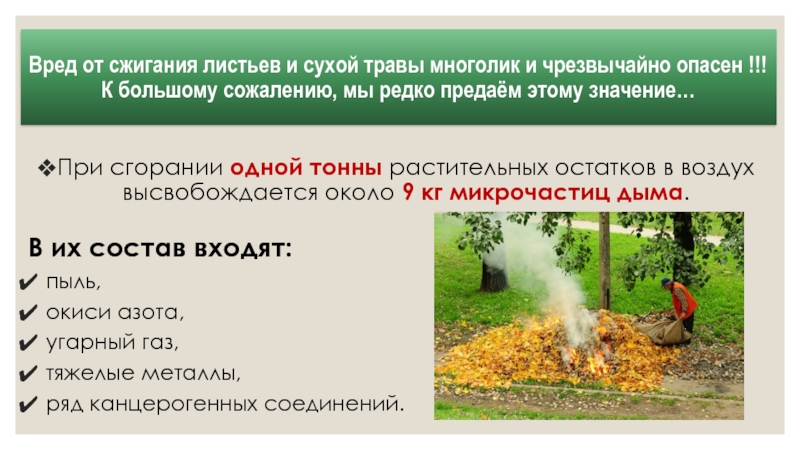 Экологи называют дым от сжигания осенних листьев биологическим оружием.
