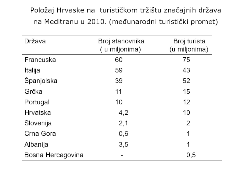 Слайд 14Položaj Hrvaske na turističkom tržištu značajnih država