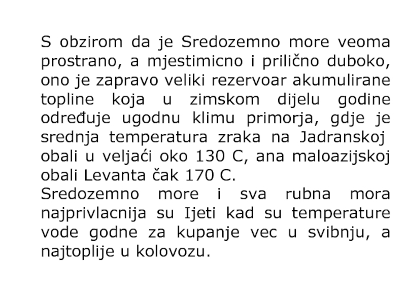 Слайд 10S obzirom da je Sredozemno more veoma prostrano, a mjestimicno