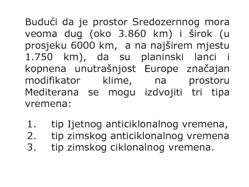 Слайд 4Budući da je prostor Sredozernnog mora veoma dug (oko 3.860