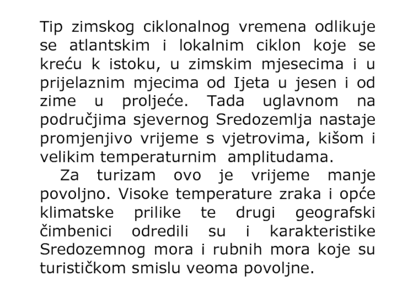 Слайд 8Tip zimskog ciklonalnog vremena odlikuje se atlantskim i lokalnim ciklon