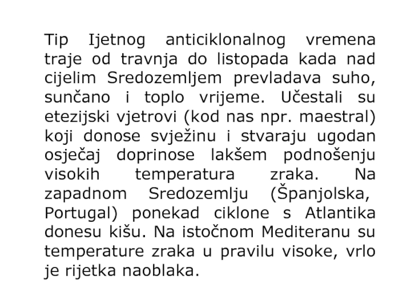 Слайд 5Tip Ijetnog anticiklonalnog vremena traje od travnja do listopada kada
