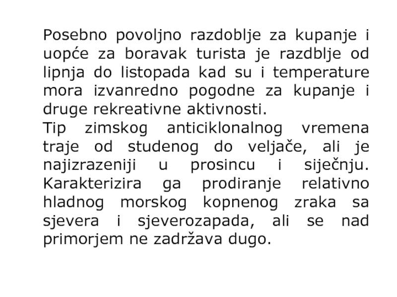 Слайд 6Posebno povoljno razdoblje za kupanje i uopće za boravak turista