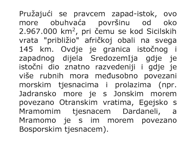 Слайд 9Pružajući se pravcem zapad-istok, ovo more obuhvaća površinu od oko