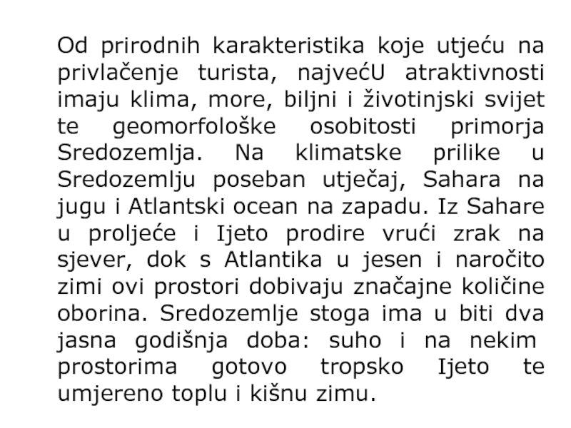 Слайд 3Od prirodnih karakteristika koje utjeću na privlačenje turista, najvećU atraktivnosti