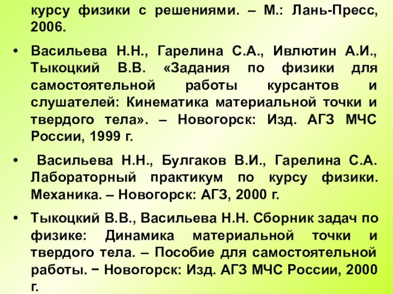 Детлаф А.А., Яворский Б.М., «Курс физики».– Учебное пособие для втузов. т.т. 1, 2, 3.– М.: Высшая школа, 2002 г.