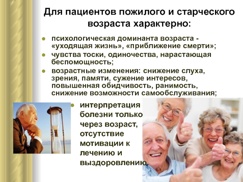 - определить своеобразие психологии пациентов, которые в силу обстоятельств вынуждены изменить свои жизненные стереотипы.