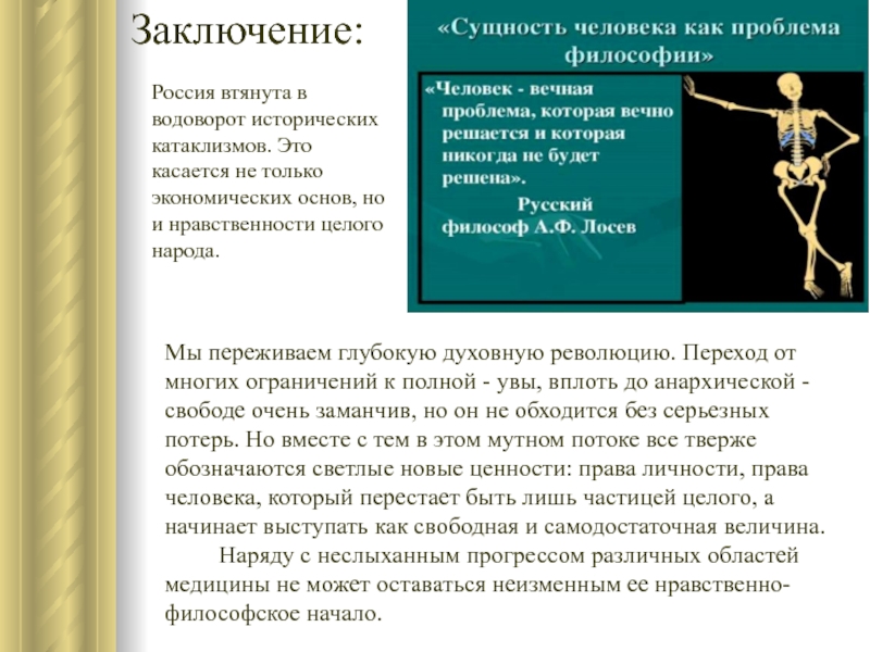 Наряду с неслыханным прогрессом различных областей медицины не может оставаться неизменным ее нравственно-философское начало.