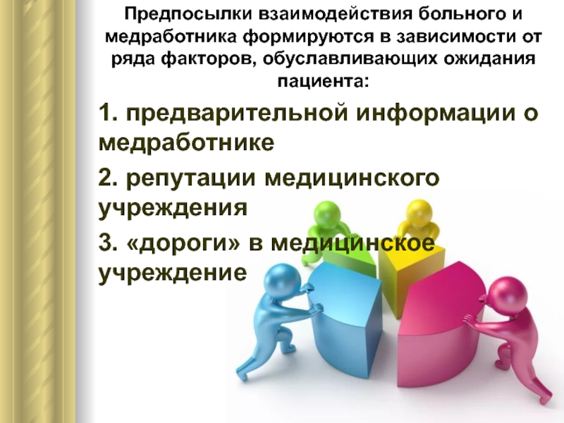 Слайд 5Предпосылки взаимодействия больного и медработника формируются в зависимости от ряда