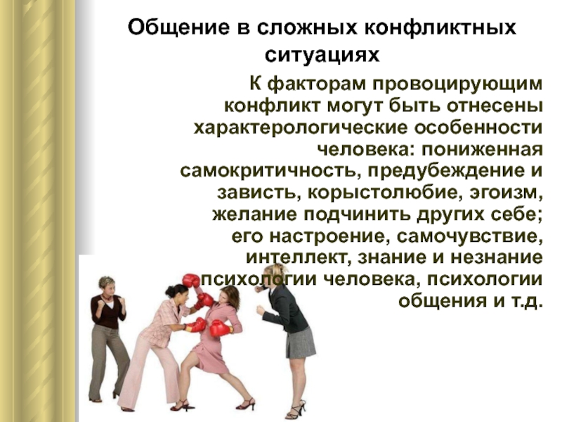 Слайд 26Вероятность наступления конфликтов повышается при: