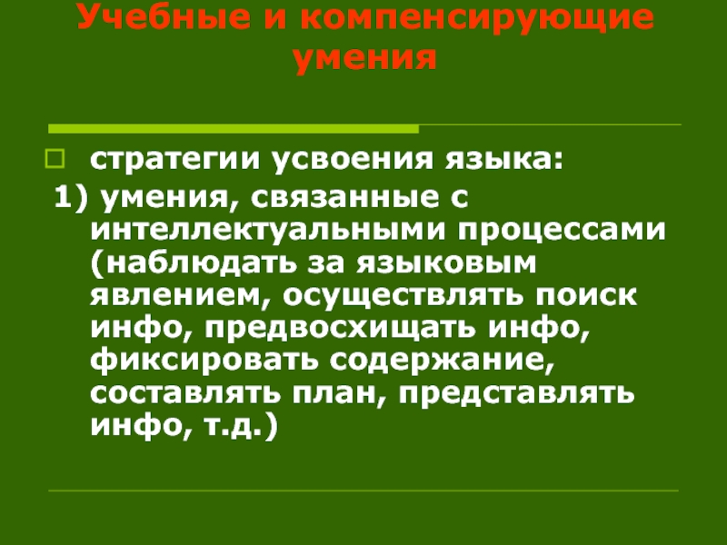 процессами (наблюдать за языковым явлением, осуществлять поиск инфо, предвосхищать инфо,