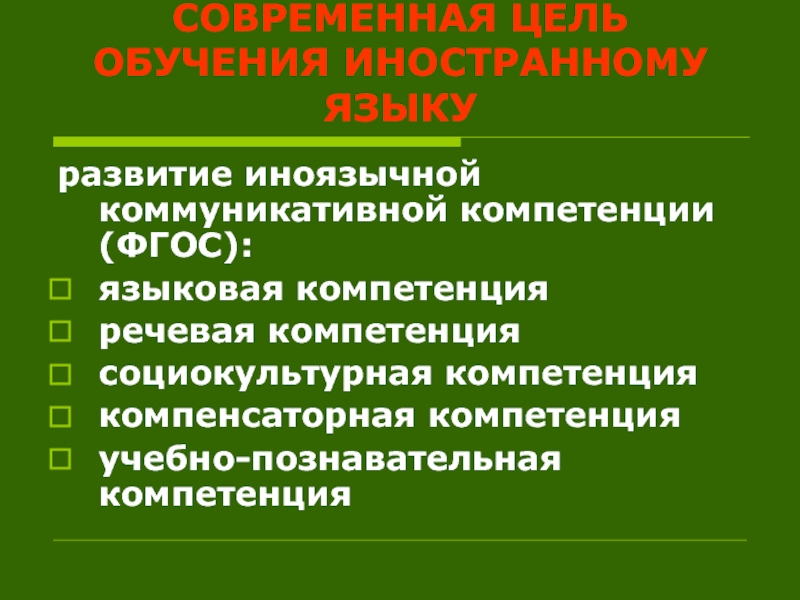 Слайд 5СОВРЕМЕННАЯ ЦЕЛЬ ОБУЧЕНИЯ ИНОСТРАННОМУ ЯЗЫКУ