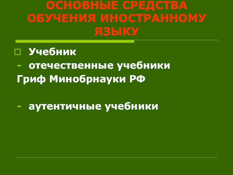 Слайд 26ОСНОВНЫЕ СРЕДСТВА ОБУЧЕНИЯ ИНОСТРАННОМУ ЯЗЫКУ