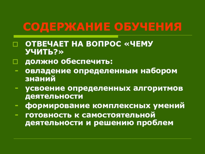 Слайд 13СОДЕРЖАНИЕ ОБУЧЕНИЯ